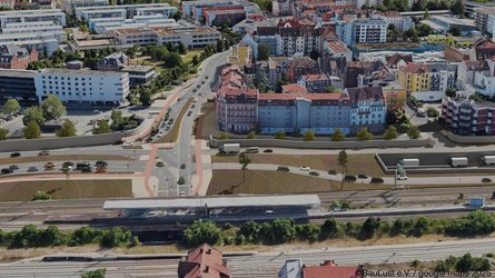 Wir haben die Bereiche des Ausbaus in eine Umgebung aus einem 3D-Modell von google maps eingesetzt. Teilweise sind die Planungsgrundlagen selbst noch sehr grob und im Detail noch ungenau, deshalb sind nicht überall detaillierte Aussagen möglich. Wir machen dies ehrenamtlich und haben nicht die Kapazitäten, absolut perfekte Animationen aufzubereiten. Deshalb sind manche Anschnitte und Übergänge nicht bearbeitet oder unscharf. Es geht uns um den Gesamteindruck des Projektes.