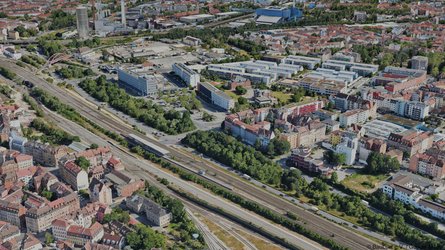 Im Hintergrund haben wir schematisch die derzeit neu entstehende SÖR-Betriebszentrale am ehemaligen Pferdemarkt angedeutet.