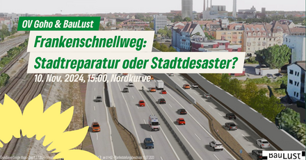 Brigitte Sesselmann wird die eindrücklichen BauLust-Visualisierungen zum kreuzungsfreien Ausbau des Frankenschnellwegs vorstellen, danach werden wir bei Kaffee und Kuchen Zeit haben, über den Frankenschnellweg zu diskutieren, die aktuelle Situation zu analysieren und uns mit anderen Akteuren zu vernetzen.