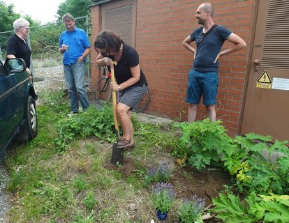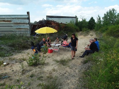 Ein Gelände zwischen Nutzen und Abwarten. Was ist da? Was kommt? Was bleibt? Wir radeln wieder von der Bauernfeindstraße zum Hasenbuck und schauen uns um, was Kleingärtner, Motorrad-Clubs und die Natur selbst so treiben. Unser mobiler Kleingarten begleitet uns mit sommerlichen Erfrischungen.